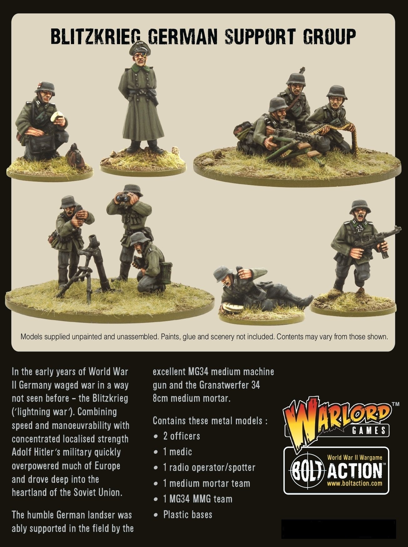The Blitzkrieg German Support Group provided tactical versatility and firepower for any German Unit unit it was attached to.