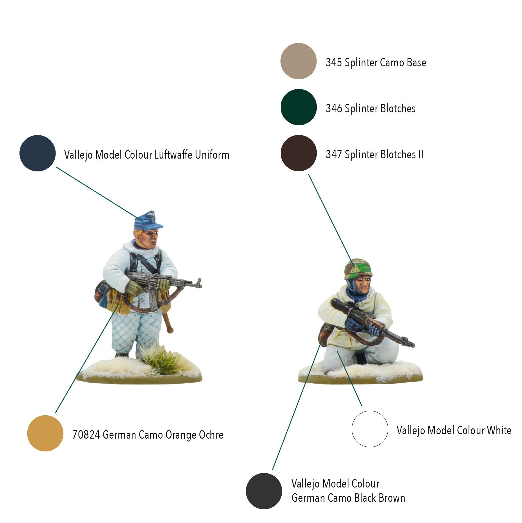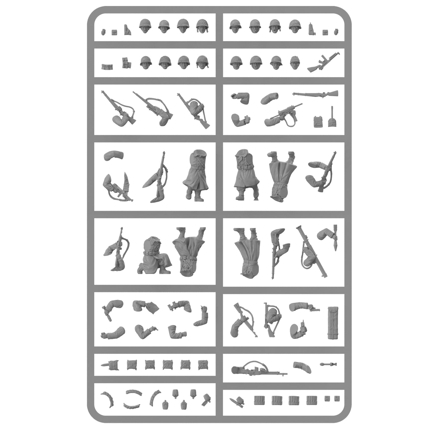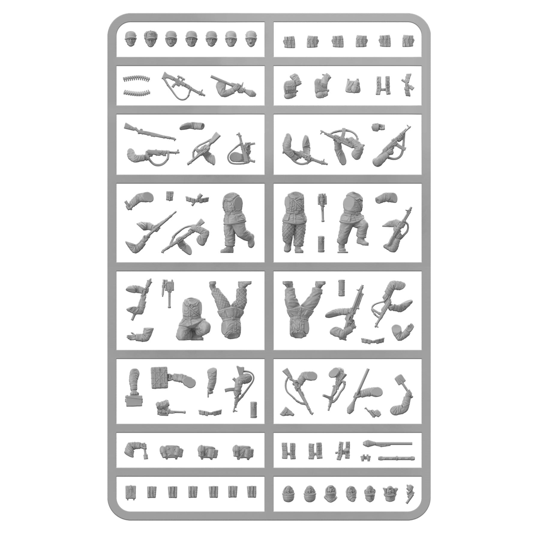 - 18 hard plastic German Fallschirmjäger (Winter) paratroopers (3 sprues)