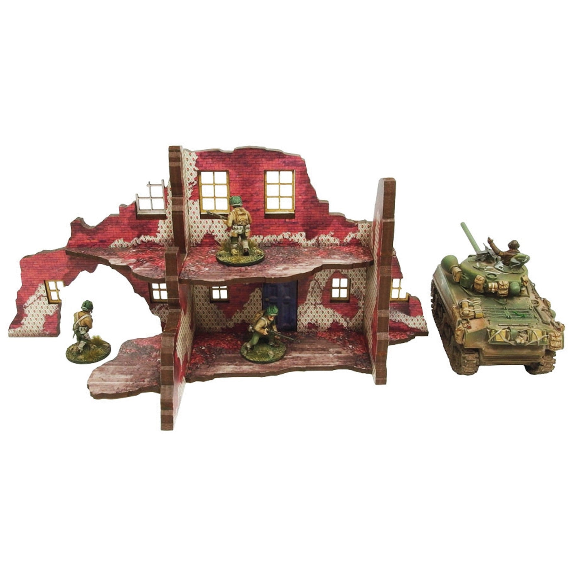 Bring WWII to life on the tabletop with the Pre-Painted WWII Normandy Ruined Large House #2!