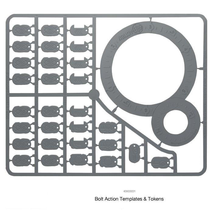 The Bolt Action Templates provide all the tokens required to keep track of your squads actions and other useful reminders. Also includes the new template for High Explosive (HE) ordnance - the bigger the artillery the bigger the area!
