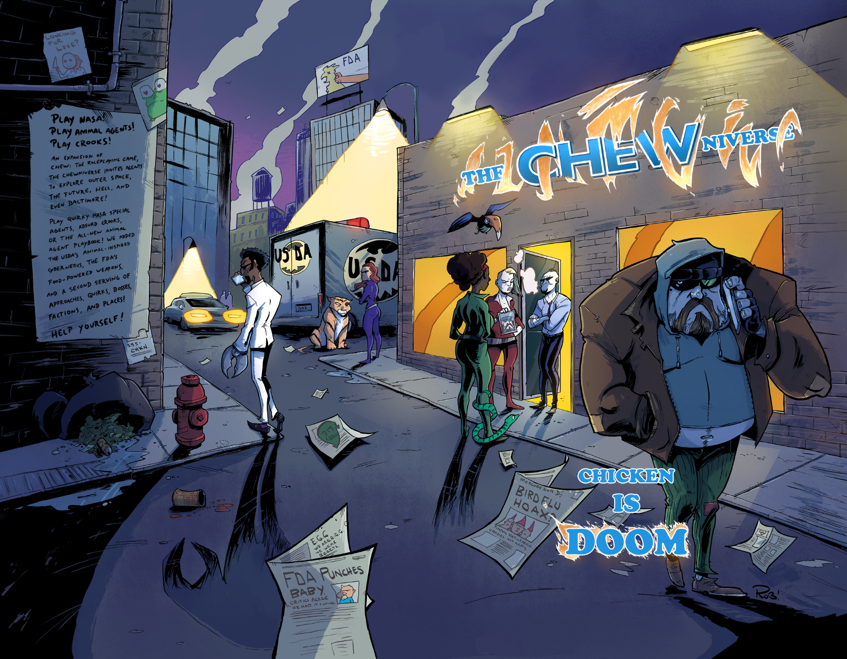 The CHEWniverse picks up where CHEW: The Roleplaying Game left off. It expands the universe of CHEW and the game in so many ways! Visit outer space, the GLORIOUS FUTURE, Hell, and even Baltimore!