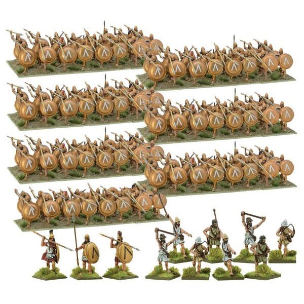 The Spartan Hoplites were respected and feared throughout Greece, and it was long thought that no land power could stand against them. Command armies of possibly the most famous fighting men in history, with the Hail Caesar Spartan Starter Army Set!