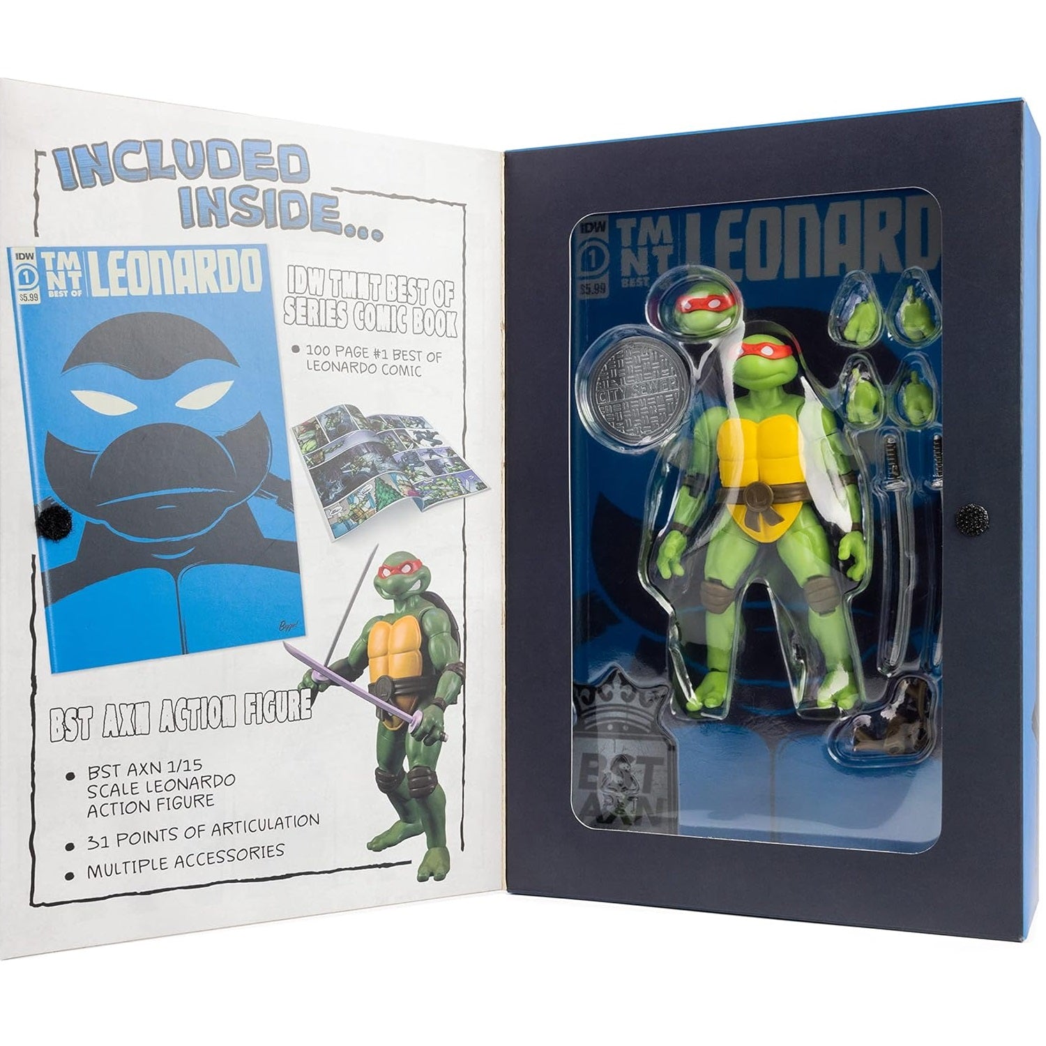 - An IDW Comic's inspired BST AXN Teenage Mutant Ninja Turtles 5" Leonardo Figure.