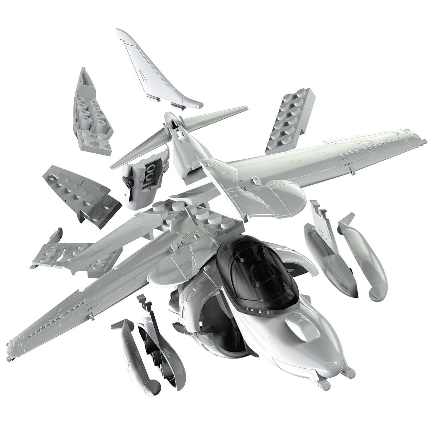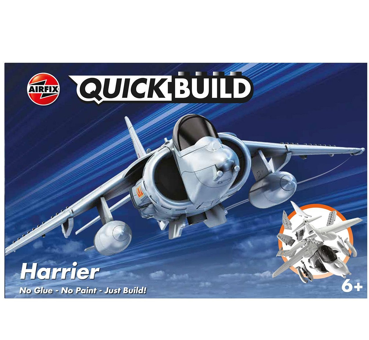 Assemble your own QUICKBUILD Harrier jet aircraft! Developed in Britain, the renowned Harrier jet is capable of taking off vertically. So fly your model in true Harrier style as you take to the skies for endless areal combat and air to ground missions.